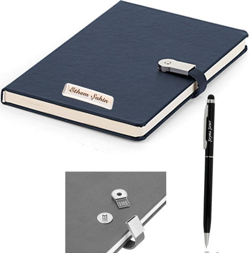 Ürün Özellikleri 6490 • Termoderi kapak defter• 16 gb USB bellekli kilit• 13 x 21 cm• 1. hamur 70 gr. kağıt - 120 yaprak• Krem rengi kağıt• Serigraf, sıcak baskı ve UV baskıya uygundur touchpadli ince Tasatım Kalem
