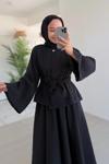 Ürün Özellikleri : İspanyol Kol Kuşak Detay Etekli Takım
