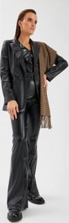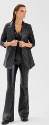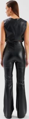 Yüksek bel, yan fermuarlı, nervür detaylı, ispanyol paça, suni deri pantolon.
