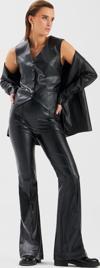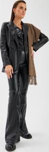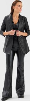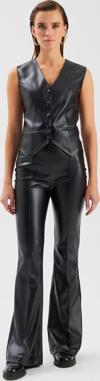 Yüksek bel, yan fermuarlı, nervür detaylı, ispanyol paça, suni deri pantolon.
