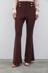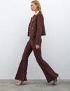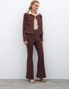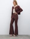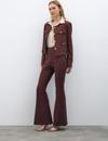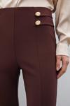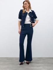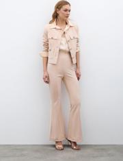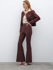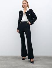 Yüksek bel, yan fermuarlı, esnek, gold süs düğmeli, ispanyol paça pantolon.