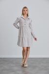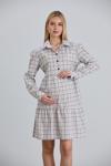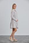 pamuklu spor ekose kumaş, emzirme detaylı gömlek yaka bir mini elbise yada tunik olarak olarak kullanabileceğiniz şekilde tasarlandı, hamilelik süresince ve sonrasında da kullanıma uygundur