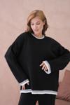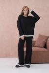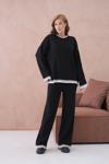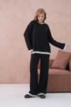 Sıfır Yaka Şeritli Triko Pantolonlu Takım