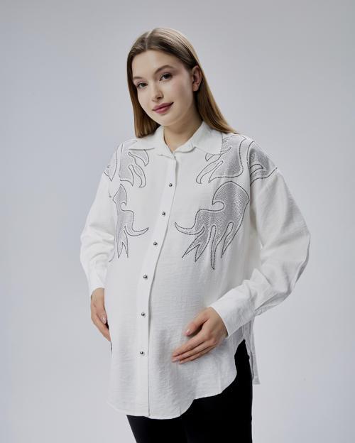 reglan kol kesimi yumuşak dokulu viskon kumaşı ve taş işlemesi ile zarir bir gömlek tasarlandı, çok maçalı kullanıma uygun olan ürünü hamilelik süresince ve sonrasında da kullanabileceksiniz, emzir için uygundur
