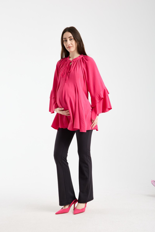 Volanlı Kol Hamile Giyim OverSize Bluz-Tunik