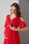 Dip Moda kadın kırmızı baby shower şifon hamile elbise HML003 - Image 1