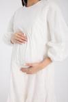 - Rahat kesimi ile günlük kullanım için ideal, oversize hamile elbisesi. - Yüksek kaliteli pamuklu kumaşı sayesinde gün boyu konfor sunar. - Şık çizgili deseniyle modern ve zamansız bir görünüm sağlar. - Cepsiz tasarımı pratik kullanım imkanı tanır; eşyalarınızı taşımak için ekstra ceplere ihtiyaç duymazsınız. - Bisiklet yakası ile rahat bir giyim deneyimi yaşatırken, şıklığından ödün vermez. - 30 derecede kolayca yıkanabilme özelliğiyle bakımı pratiktir. - Hem hamilelik döneminde hem de sonrasında rahatlıkla tercih edebileceğiniz bir modeldir. - Sürdürülebilir malzemeler kullanılarak üretilmiştir, çevre dostudur. - Gömlek elbise siluetiyle farklı kombinler yapma esnekliği sunar. - Uzun kollu tasarım soğuk havalarda ekstra koruma sağlar. - Beyaz rengiyle ferahlık hissi verir ve her tür aksesuarla uyum içinde olabilir.
