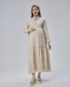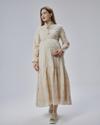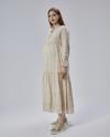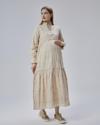 brode işleme zarifliği yumuşak dokulu viskon kumaş ve çingene etek modeli ile harika bir görünüm alan midi boy hamile elbise, anne adaylarının hamilelik süresince ve sonrasında da severek kullanabileceği faydalı bir tasarım...