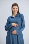 Liyosel Emzirmeli Gömlek Yaka Hamile Maxi Elbise