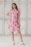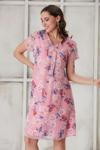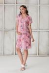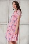 Işşıl 4487-Pile Yaka Beyaz Gül Kısa Kol Mini Hamile Elbise