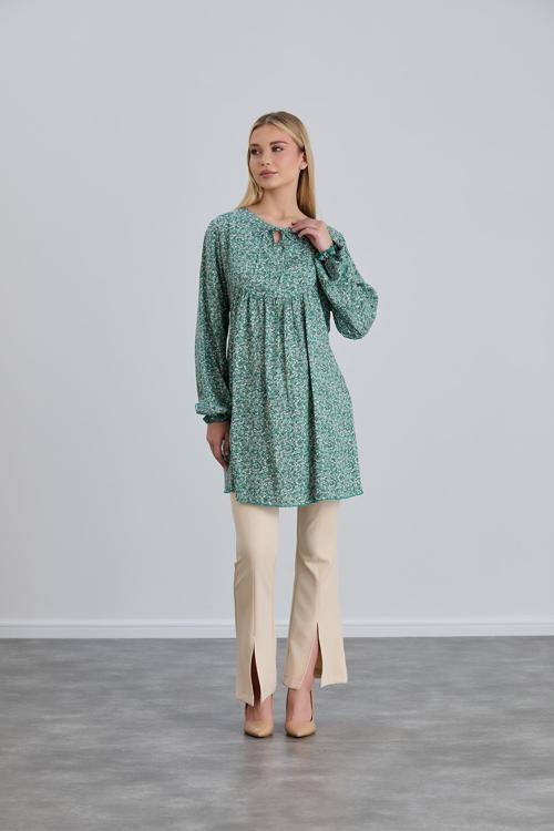 yumuşak dokulu çıtır çiçekli viskon kumaşdan tasarlanan bluz-tunik rahat kesimi ve çok amaçlı kullanıma uygundur, anne adaylarının hamilelik süresince ve sonrasında da kullanabilecekler,