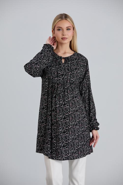 Işşıl 4544-Bağlamalı Yakak Çıtır Çiçekli Hamile Viskon Bluz-Tunik