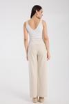 - Yüksek bel tasarımı sayesinde karın bölgesini nazikçe sararak hamilelik döneminde konforlu bir kullanım sunar. - Esnek yapısı ile vücut hatlarınıza uyum sağlayarak rahat hareket etme olanağı tanır. - Krem rengiyle şıklığı ve zarafeti ön plana çıkaran bu pantolon, günlük giyimin vazgeçilmez parçalarından biridir. - Bol paça kesimi sayesinde bacaklarınızda ekstra genişlik hissi bırakmadan özgürce adım atmanızı sağlar. - Viskoz karışım materyali cildinizle dost dokunuşlar sunarken, polyester ve elastan bileşenleri esnekliği artırarak gün boyu rahatlık sağlar. - Günlük kullanım için ideal olan bu pantolon, hem evde hem de dışarıda keyifli anların vazgeçilmezi olabilir. - İthal malzemelerden üretilmiş olmasıyla kalite standartlarına uygunluk gösterirken, yerel üretim avantajıyla da desteklenmektedir. - Cepsiz yapısı pratiklik kazandırırken bol paça detaylarıyla modern bir görünüm sergiler. - Sade ve düz deseniyle kolayca kombinlenebilir; farklı üst giyim seçenekleriyle uyumu kolaylaştırır. - Düz silueti sayesinde her tür ayakkabıya mükemmel şekilde eşlik ederken, straight fit kesimiyle zamansız bir tarz sunar. - Sürdürülebilirlik bilinciyle üretilmiş olup çevre dostu malzemeler kullanılarak imal edilmiştir; böylece doğaya duyarlı tercihler yapmış olursunuz.