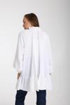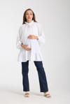 - Rahat kesimi ile hamilelik döneminde konfor sunar. - Beyaz rengiyle kolayca kombinlenebilir ve şıklığına şıklık katar. - Dokuma kumaşı sayesinde dayanıklı ve uzun ömürlü kullanım sağlar. - Carmen yaka tasarımı, feminen bir görünüm kazandırırken rahatlık sunar. - Oversize kalıbı ile vücut hatlarını nazikçe sararak özgürce hareket etme imkanı tanır. - Kloş silueti sayesinde modern ve trend bir tarza sahip olmanızı sağlar. - Günlük kullanıma uygun yapısıyla her ortamda rahatlıkla tercih edilebilir. - Poliüretan materyali suya ve neme karşı dayanıklılık göstererek cildinizin nefes almasına olanak tanır. - Soyut deseniyle zamansız bir stil oluştururken, her mevsim moda olmanızı sağlar. - Uzun kollu tasarım soğuk havalarda ekstra koruma sunarken şık duruşundan ödün vermez. - Hamile koleksiyonuna özel olarak tasarlanmıştır; annelik sürecinizde size eşlik eder. - Sürdürülebilirlik detayına önem verilerek üretilmiştir; çevre dostu bir seçimdir.