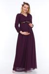baby shower özel gün ve davetleriniz için tasarlanmış kruvaze yaka modeli ve şık çiçek kuşağı ile zerafetten şıklıktan hoşlanan hamile anne adaylarının beğenerek giyineceği bir model
