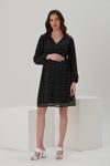 Dip Moda kadın siyah kruvaze yaka baby shower şifon hamile elbise HML003 - Image 1