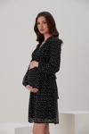 Işşıl E118-Damla Desen Kruvaze Yaka Hamile Şifon Elbise