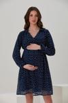 zarif şifon kumaş damla desenler ile güzel bir görünüm aldı, emzirme döneminde de kullanılabilecek şekilde tasarlanan model, çok amaçlı kullanıma uygundur...