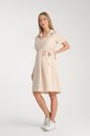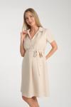yumuşak dokulu keten kumaşı, ezmirmeye uygun kruvaze yaka modeli ve kuşak bağlaması ile rahat bir elbise tasarlandı, yaka kapanması zarif bir broş ile yapıldı, hamile giyim elbise modelini hamilelik süresince ve sonrasında emzirme döneminde de kullanabilirsiniz...