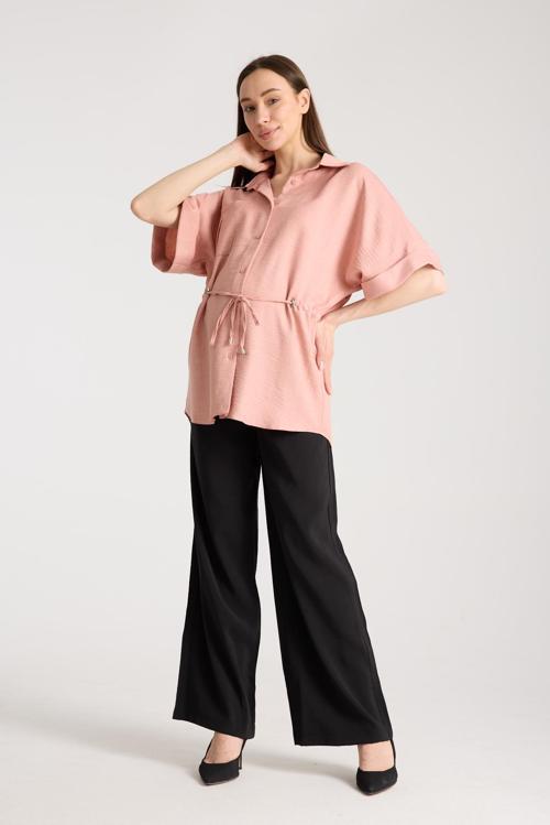 IŞŞIL 50850-Balon Kol OwerSize Hamile Crep Bluz-Tunik - Image 1