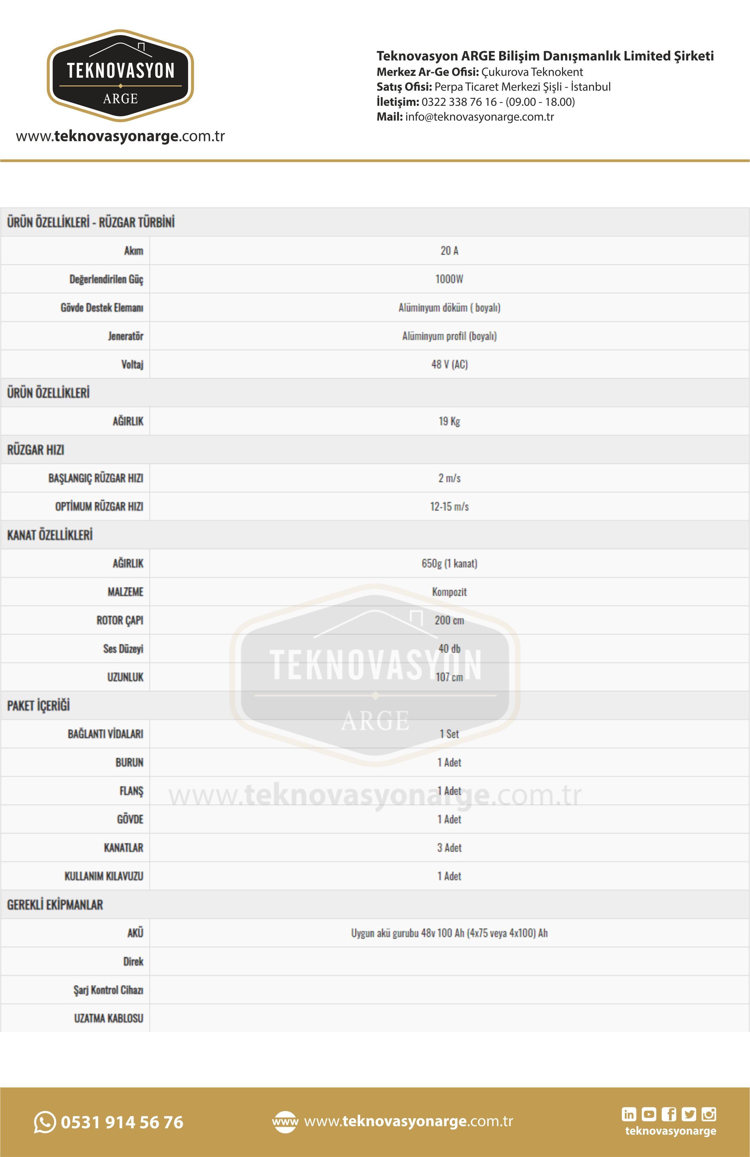 iSTABreeze i-1000 48 v 1200 Watt Kara tipi rüzgar jeneratörü Kullanım alanı elektirik ihtiyacı olan heryerde dağ evlerinde ve yazlık evlerde tercih edilmektedir. Düşük rüzgar hızlarında dahi sarj akımı sağlar. Aerodinamik yapıya sahip kanatlar kırılmaz güçlü yapıya sahiptir.Sağlam rüzgar jeneratörü Orijinal iSTA-Breeze i-1000 / 48V kompozit rotor kanatları aynı zamanda alışılmadık derecede hafif, çok dayanıklı ve kararlıdır. Gövde, jeneratörün en iyi şekilde soğumasını garanti eden alüminyum malzemeden üretilmiştir. Bakım gerektirmeyen kayma kontağı (kömürsüz) iyi bir akım akışı garanti eder ve bu nedenle direk içinde kablonun bükülmemesini sağlar.