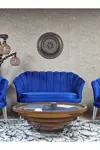 Zafir İkili İstiridye Krom Kaplama Telli Ayak Çay Seti Koltuk Tekli Berjer , İkili Berjer Koltuk Mavi Renk 110 x 48 Boyut/Ebat