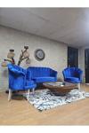 İkili İstiridye Krom Kaplama Telli Ayak Çay Seti Koltuk Tekli Berjer , İkili Berjer Koltuk Mavi Renk 110 x 48 Boyut/Ebat - Image 1