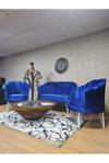 Zafir İkili İstiridye Gold Kaplama Telli Ayak Çay Seti Koltuk Tekli Berjer , İkili Berjer Koltuk Mavi Renk 110 x 48 Boyut/Ebat