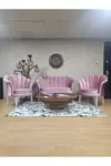 İkili İstiridye Gold Kaplama Sivriltme Ayak Çay Seti Koltuk İkili Berjer , İkili Berjer Koltuk Pembe Renk 110 x 48 Boyut/Ebat - Image 1