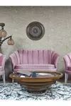 Zafir İkili İstiridye Gold Kaplama Sivriltme Ayak Çay Seti Koltuk İkili Berjer , İkili Berjer Koltuk Pembe Renk 110 x 48 Boyut/Ebat