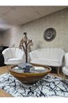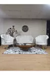 İstiridye Takım Beyaz Boyalı Sivriltme Ayak Çay Seti Koltuk Takımı Krem Renk 110 x 48 Boyut/Ebat - Image 1
