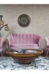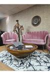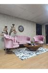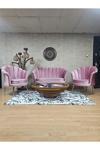 Zafir İstiridye Takım Krom Kaplama Sivriltme Ayak Çay Seti Koltuk Takımı Pembe Renk 110 x 48 Boyut/Ebat