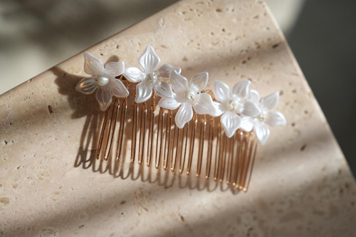 Şeffaf plastik çiçek&gold tarak toka ile birleştirilmiştir.