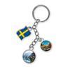 İsveç Bayrağı ve Şehir & Simge temalı, metal, üçlü epoksi, çift taraflı canlı baskılı seyahat hatıra anahtarlığıdır.