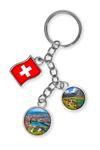 İsviçre Bayrağı ve Şehir & Simge temalı, metal, üçlü epoksi, çift taraflı canlı baskılı seyahat hatıra anahtarlığıdır.