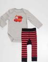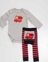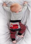 2'li erkek bebek takım. Pamuklu kumaştan, zarf yaka, önü itfaiye baskılı body. Ve kalın, pamuklu, havlu tarzı örmeden, çizgili tayt pantolon. Bebeklerin rahat hareket etmesi düşünülerek esnek tasarlanmıştır. Poposunda sevimli itfaiye deseni vardır. Tüm Denokids ürünleri çocuk güvenliği düşünülerek üretilmiştir ve iğne dedektörlerinden geçirilmiştir.