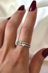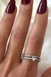 İthal Seri İkili Full Zirkon Taşlı Kalp Tasarım Yarım Tur Ayarlanabilir Kadın Çelik Yüzük