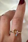 İthal Seri Renkli Zirkon Taşlı Zarif Damla Taş Tasarım Ayarlanabilir Kadın Çelik Yüzük