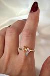 Pirinç Ayarlamalı Gümüş Renk Zirkon Taşlı 2li Görünüm Fiyonk Yüzük - TJ-BYK3288 - Image 1