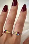 Leostone İthal Seri Renkli Zirkon Taşlı Zarif Tasarım Ayarlanabilir Kadın Çelik Yüzük
