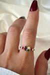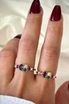 Ose Shop Renkli Tasli Yıldız Figürlü Gümüş Rose Ayarlanabilir Şovalye Yüzük