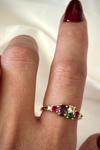 İthal Seri Zarif Karışık Renkli Oval Taşlı Tasarım Ayarlanabilir Kadın Çelik Yüzük
