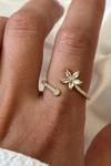 925 Ayar Gümüş Ayarlanabilir Rodyum Kaplama Zirkon Taşlı Dönen Kelebek  Yüzük - Image 1