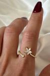 Bers Aksesuar Minimal Kalp Beyaz Taşlı Ayarlanabilir Kadın 14 K Gold Altın Kaplama Yüzük - Image 1