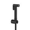 Siyah kaplamalı, pirinçten üretilmiş yuvarlak bide sprey seti; modern tasarımı, sağlam yapısı ve kolay kullanımı ile öne çıkıyor.