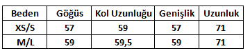 Ürün Beden Tablosu: