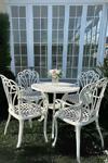 Bu masa takımı, dört kişilik oturma kapasitesi sunar ve beyaz rengiyle her türlü dış mekan dekorasyonuna uyum sağlar.