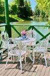 İVF markasının dış mekanda kullanılabilir ferforje görünümlü masa ve sandalye takımı, şık ve zarif tasarımıyla dikkat çeker.