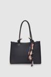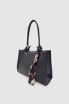 Ivora Düğümlü Sap Fular Detaylı Dikdörtgen Tote Omuz Çantası Siyah Özellikleri