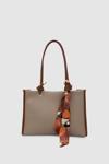 Ivora Düğümlü Sap Fular Detaylı Dikdörtgen Tote Omuz Çantası Vizon-Taba Özellikleri